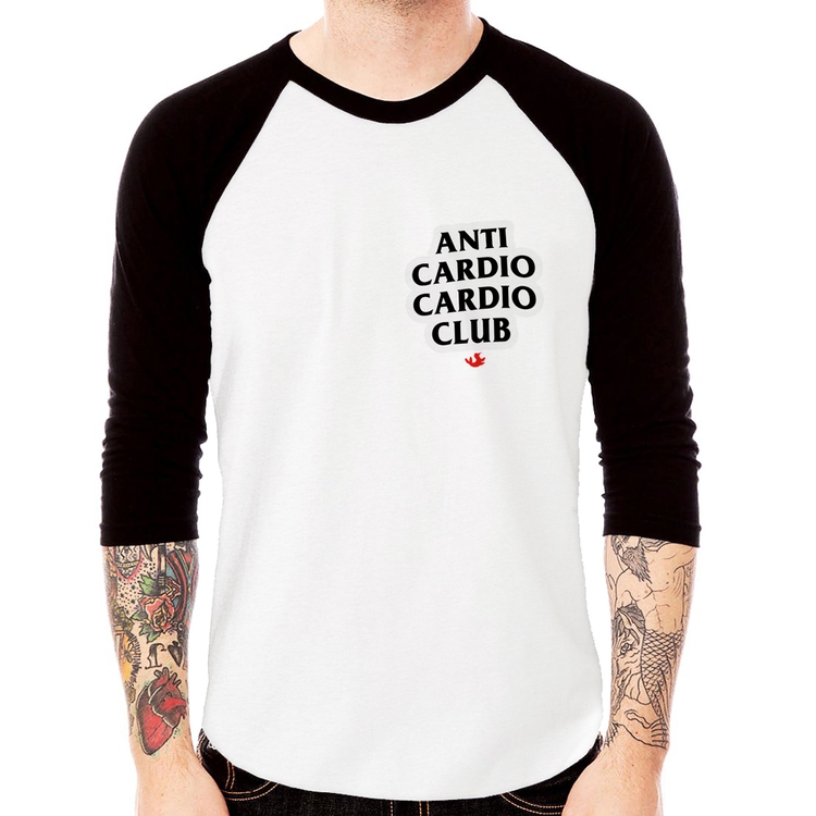 A Camiseta Raglan Anti Cardio Cardio Club Manga 3/4 é confeccionada em tecido 100% Poliéster com gola redonda na cor preta, costura simples e modelagem com caimento reto. A estampa do tema "Frases e Memes" é feita através do processo Sublimação. Produto ideal para quem busca fidelidade da estampa e ótimo custo-benefício, a estampa não desbota nem quebra.