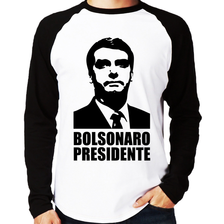 A Camiseta Raglan Bolsonaro Presidente Manga Longa é confeccionada em tecido 100% Poliéster com gola redonda na cor preta, costura simples e modelagem com caimento reto. A estampa do tema "Política" é feita através do processo Sublimação. Produto ideal para quem busca fidelidade da estampa e ótimo custo-benefício, a estampa não desbota nem quebra.