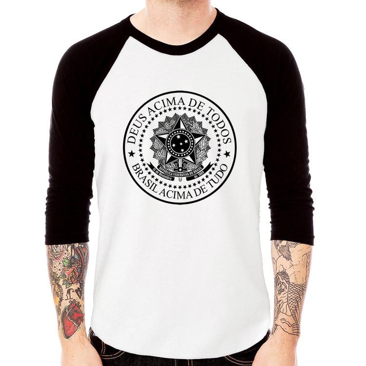 Camiseta Raglan Brasil Acima de Tudo Deus Acima de Todos Manga 3/4