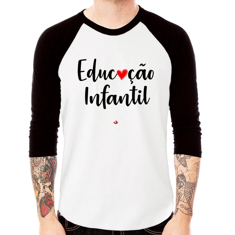 A Camiseta Raglan Educação Infantil por amor Manga 3/4 é confeccionada em tecido 100% Poliéster com gola redonda na cor preta, costura simples e modelagem com caimento reto. A estampa do tema "Cursos e Profissões" é feita através do processo Sublimação. Produto ideal para quem busca fidelidade da estampa e ótimo custo-benefício, a estampa não desbota nem quebra.