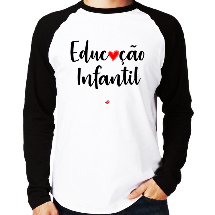A Camiseta Raglan Educação Infantil por amor Manga Longa é confeccionada em tecido 100% Poliéster com gola redonda na cor preta, costura simples e modelagem com caimento reto. A estampa do tema "Cursos e Profissões" é feita através do processo Sublimação. Produto ideal para quem busca fidelidade da estampa e ótimo custo-benefício, a estampa não desbota nem quebra.