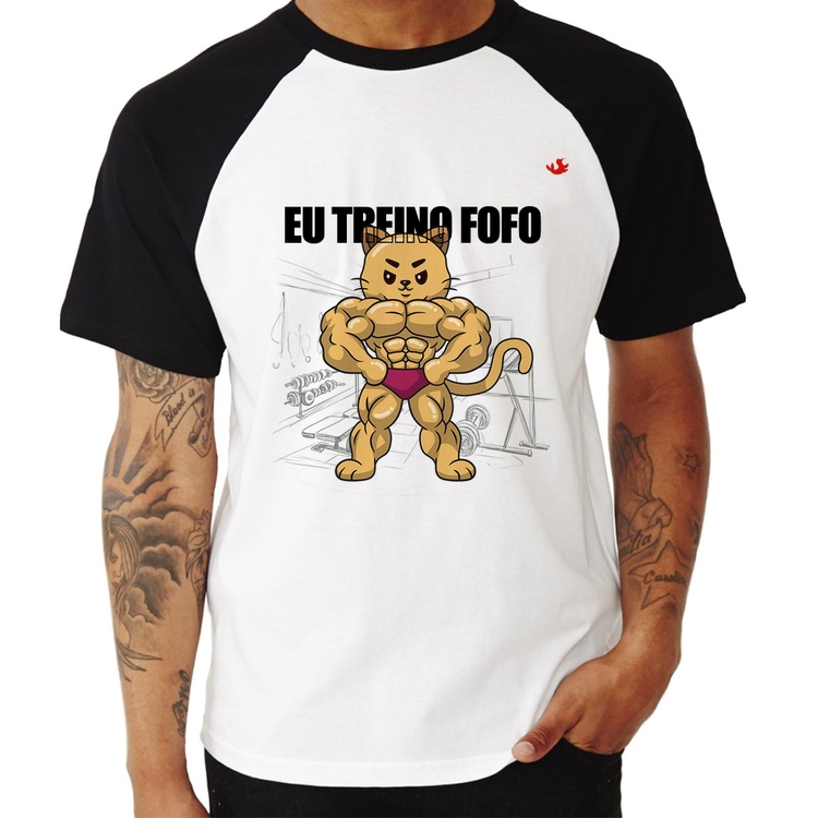 A Camiseta Raglan Eu treino fofo - M é confeccionada em tecido 100% Poliéster com gola redonda na cor preta, costura simples e modelagem com caimento reto. A estampa do tema "Esportes" é feita através do processo Sublimação. Produto ideal para quem busca fidelidade da estampa e ótimo custo-benefício, a estampa não desbota nem quebra.