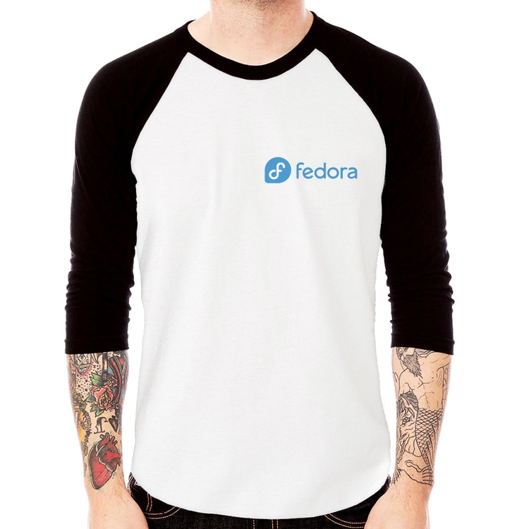A Camiseta Raglan Fedora Linux Manga 3/4 é confeccionada em tecido 100% Poliéster com gola redonda na cor preta, costura simples e modelagem com caimento reto. A estampa do tema "Tecnologia" é feita através do processo Sublimação. Produto ideal para quem busca fidelidade da estampa e ótimo custo-benefício, a estampa não desbota nem quebra.