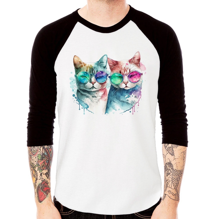 A Camiseta Raglan Gatos de óculos Manga 3/4 é confeccionada em tecido 100% Poliéster com gola redonda na cor preta, costura simples e modelagem com caimento reto. A estampa do tema "Esportes" é feita através do processo Sublimação. Produto ideal para quem busca fidelidade da estampa e ótimo custo-benefício, a estampa não desbota nem quebra.