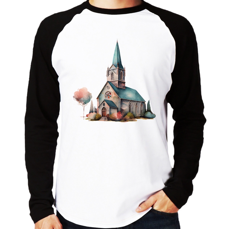 A Camiseta Raglan Igreja Arte Manga Longa é confeccionada em tecido 100% Poliéster com gola redonda na cor preta, costura simples e modelagem com caimento reto. A estampa do tema "Religiosas" é feita através do processo Sublimação. Produto ideal para quem busca fidelidade da estampa e ótimo custo-benefício, a estampa não desbota nem quebra.
