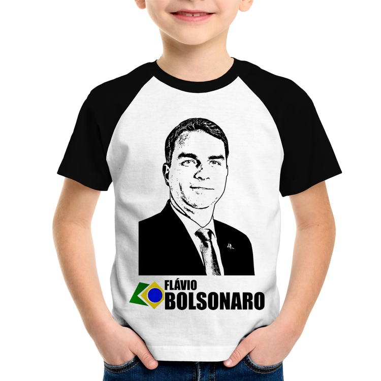 A Camiseta Raglan Infantil Flávio Bolsonaro 2026 é confeccionada em tecido 100% Poliéster com gola redonda na cor preta, costura simples e modelagem com caimento reto. A estampa do tema "Política" é feita através do processo Sublimação. Produto ideal para quem busca fidelidade da estampa e ótimo custo-benefício, a estampa não desbota nem quebra.