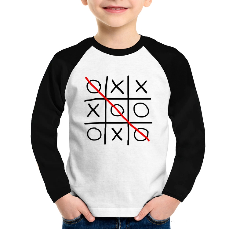A Camiseta Raglan Infantil Jogo da Velha Manga Longa é confeccionada em tecido 100% Poliéster com gola redonda na cor preta, costura simples e modelagem com caimento reto. A estampa do tema "Game e Jogos" é feita através do processo Sublimação. Produto ideal para quem busca fidelidade da estampa e ótimo custo-benefício, a estampa não desbota nem quebra.