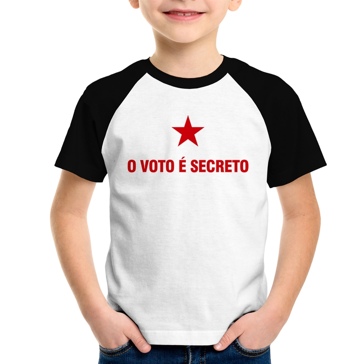 A Camiseta Raglan Infantil O voto é secreto é confeccionada em tecido 100% Poliéster com gola redonda na cor preta, costura simples e modelagem com caimento reto. A estampa do tema "Política" é feita através do processo Sublimação. Produto ideal para quem busca fidelidade da estampa e ótimo custo-benefício, a estampa não desbota nem quebra.