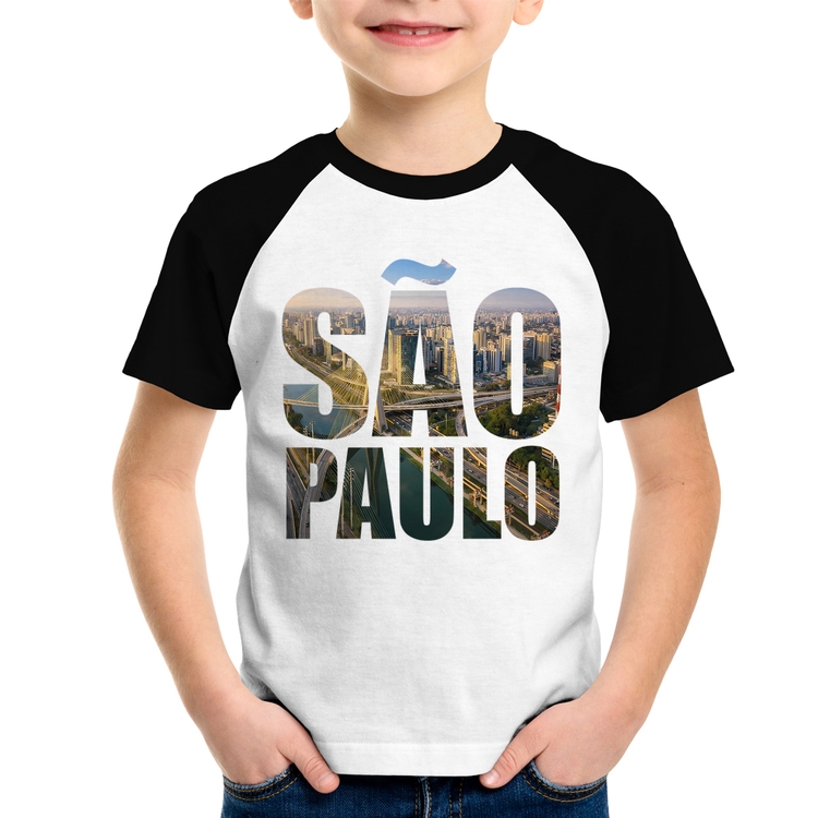 A Camiseta Raglan Infantil São Paulo Cidade Letras é confeccionada em tecido 100% Poliéster com gola redonda na cor preta, costura simples e modelagem com caimento reto. A estampa do tema "Lugares" é feita através do processo Sublimação. Produto ideal para quem busca fidelidade da estampa e ótimo custo-benefício, a estampa não desbota nem quebra.