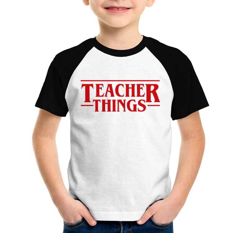A Camiseta Raglan Infantil Teacher Things é confeccionada em tecido 100% Poliéster com gola redonda na cor preta, costura simples e modelagem com caimento reto. A estampa do tema "Cursos e Profissões" é feita através do processo Sublimação. Produto ideal para quem busca fidelidade da estampa e ótimo custo-benefício, a estampa não desbota nem quebra.