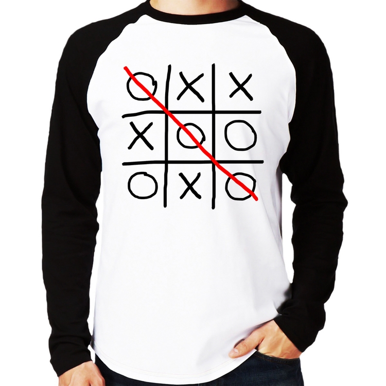 A Camiseta Raglan Jogo da Velha Manga Longa é confeccionada em tecido 100% Poliéster com gola redonda na cor preta, costura simples e modelagem com caimento reto. A estampa do tema "Game e Jogos" é feita através do processo Sublimação. Produto ideal para quem busca fidelidade da estampa e ótimo custo-benefício, a estampa não desbota nem quebra.