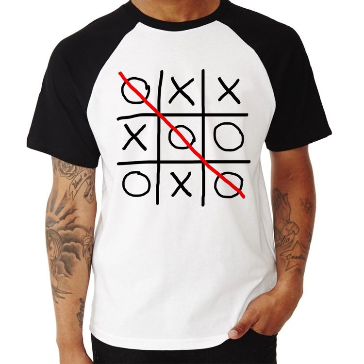 A Camiseta Raglan Jogo da Velha é confeccionada em tecido 100% Poliéster com gola redonda na cor preta, costura simples e modelagem com caimento reto. A estampa do tema "Game e Jogos" é feita através do processo Sublimação. Produto ideal para quem busca fidelidade da estampa e ótimo custo-benefício, a estampa não desbota nem quebra.
