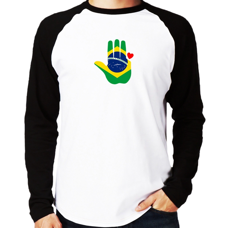 A Camiseta Raglan Mão Lula Coração Bandeira Brasil 2026 PT 13 Manga Longa é confeccionada em tecido 100% Poliéster com gola redonda na cor preta, costura simples e modelagem com caimento reto. A estampa do tema "Política" é feita através do processo Sublimação. Produto ideal para quem busca fidelidade da estampa e ótimo custo-benefício, a estampa não desbota nem quebra.