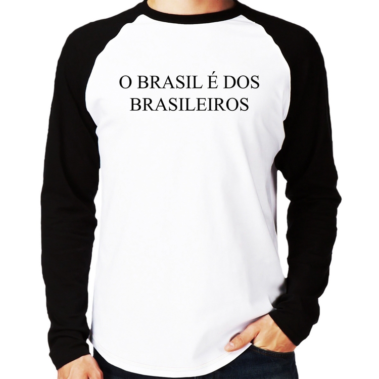A Camiseta Raglan O Brasil é dos brasileiros Manga Longa é confeccionada em tecido 100% Poliéster com gola redonda na cor preta, costura simples e modelagem com caimento reto. A estampa do tema "Política" é feita através do processo Sublimação. Produto ideal para quem busca fidelidade da estampa e ótimo custo-benefício, a estampa não desbota nem quebra.