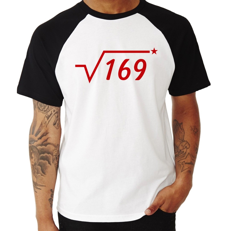 A Camiseta Raglan Raiz Quadrada 169 (Estrela) é confeccionada em tecido 100% Poliéster com gola redonda na cor preta, costura simples e modelagem com caimento reto. A estampa do tema "Política" é feita através do processo Sublimação. Produto ideal para quem busca fidelidade da estampa e ótimo custo-benefício, a estampa não desbota nem quebra.