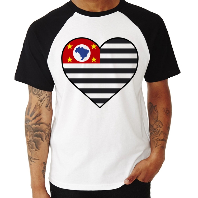 A Camiseta Raglan São Paulo Bandeira Estado Coração é confeccionada em tecido 100% Poliéster com gola redonda na cor preta, costura simples e modelagem com caimento reto. A estampa do tema "Bandeiras" é feita através do processo Sublimação. Produto ideal para quem busca fidelidade da estampa e ótimo custo-benefício, a estampa não desbota nem quebra.