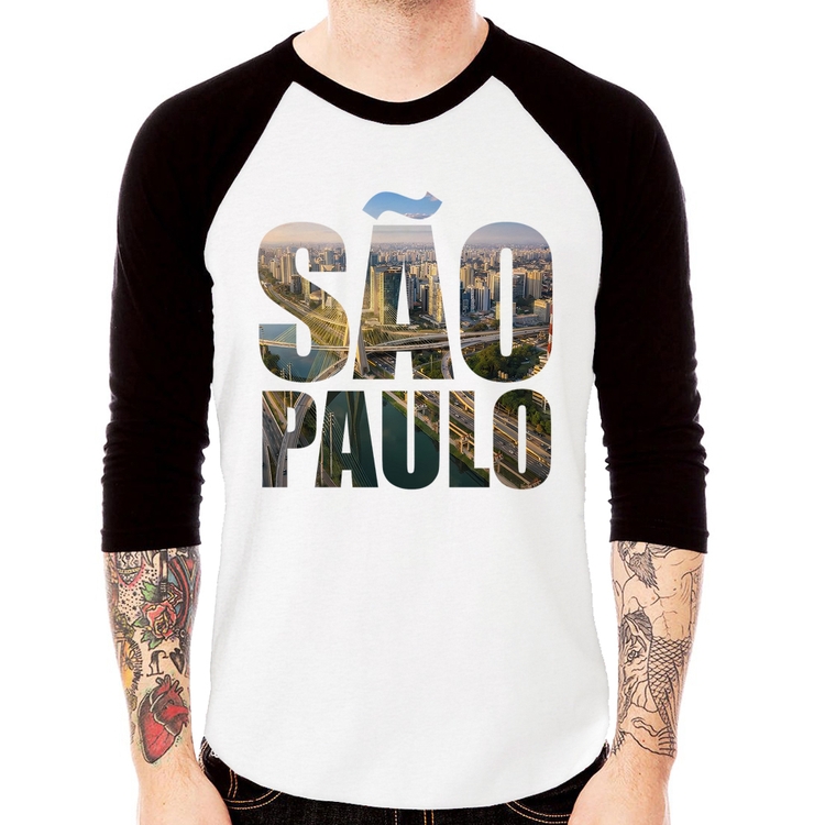 A Camiseta Raglan São Paulo Cidade Letras Manga 3/4 é confeccionada em tecido 100% Poliéster com gola redonda na cor preta, costura simples e modelagem com caimento reto. A estampa do tema "Lugares" é feita através do processo Sublimação. Produto ideal para quem busca fidelidade da estampa e ótimo custo-benefício, a estampa não desbota nem quebra.