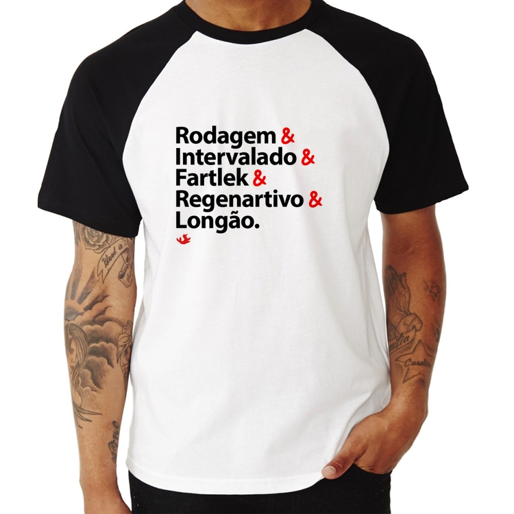 A Camiseta Raglan Treinos de Corrida é confeccionada em tecido 100% Poliéster com gola redonda na cor preta, costura simples e modelagem com caimento reto. A estampa do tema "Esportes" é feita através do processo Sublimação. Produto ideal para quem busca fidelidade da estampa e ótimo custo-benefício, a estampa não desbota nem quebra.