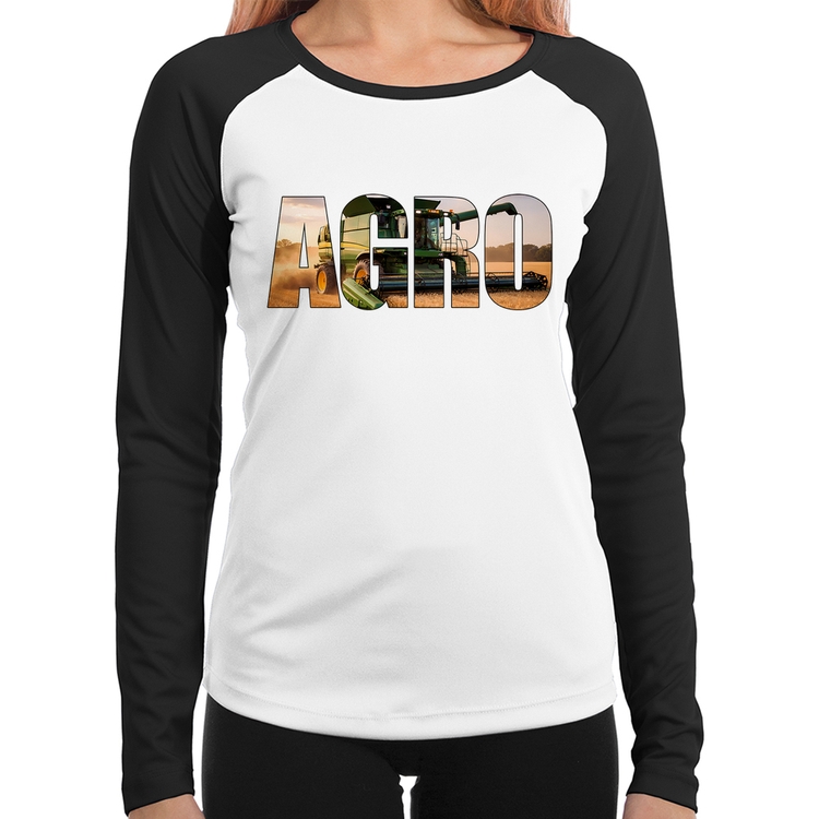 Baby Look Raglan Agro Colheitadeira Rural Manga Longa
