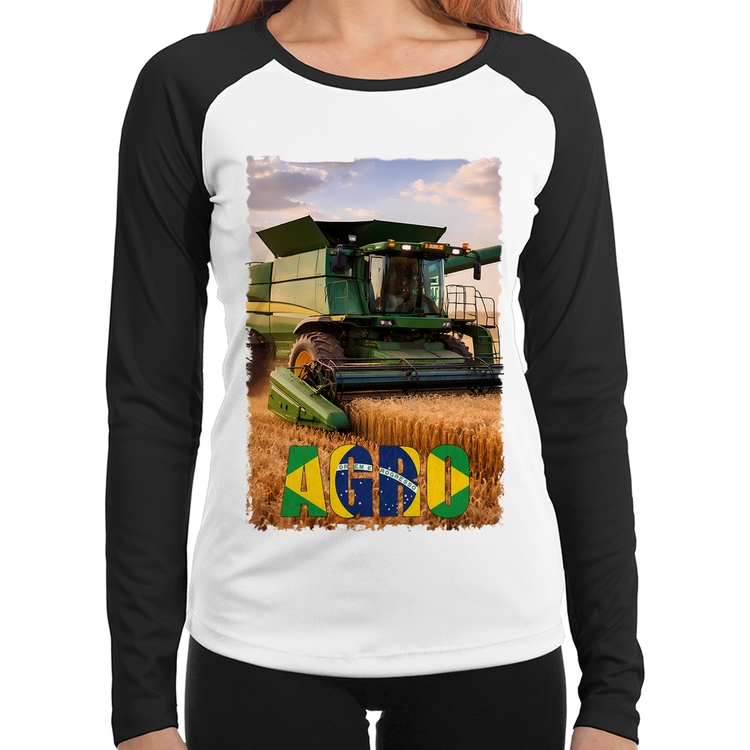 A Baby Look Raglan Colheitadeira Agro Brasil Rural Manga Longa é confeccionada em tecido 100% Poliéster com gola redonda viés na cor preta, costura simples e modelagem com caimento acinturado. A estampa do tema "Agro" é feita através do processo Sublimação. Produto ideal para quem busca fidelidade da estampa e ótimo custo-benefício, a estampa não desbota nem quebra.