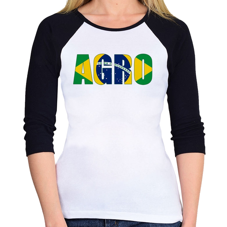 A Baby Look Raglan Agro Brasil Rural Manga 3/4 é confeccionada em tecido 100% Poliéster com gola redonda viés na cor preta, costura simples e modelagem com caimento acinturado. A estampa do tema "Agro" é feita através do processo Sublimação. Produto ideal para quem busca fidelidade da estampa e ótimo custo-benefício, a estampa não desbota nem quebra.