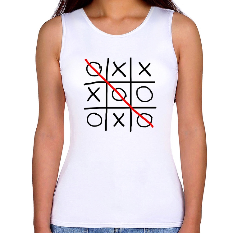 A Regata Feminina Jogo da Velha é confeccionada em tecido 100% Poliéster com gola redonda viés, costura simples e modelagem com caimento acinturado. A estampa do tema "Game e Jogos" é feita através do processo Sublimação. Produto ideal para quem busca fidelidade da estampa e ótimo custo-benefício, a estampa não desbota nem quebra.