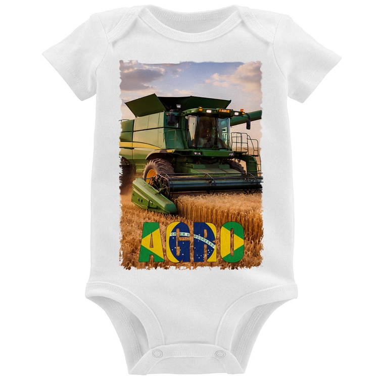 O Body Bebê Colheitadeira Agro Brasil Rural é confeccionado em tecido 100% Poliéster com gola redonda, costura simples e modelagem com caimento reto. A estampa do tema "Agro" é feita através do processo Sublimação. Produto ideal para quem busca fidelidade da estampa e ótimo custo-benefício, a estampa não desbota nem quebra.