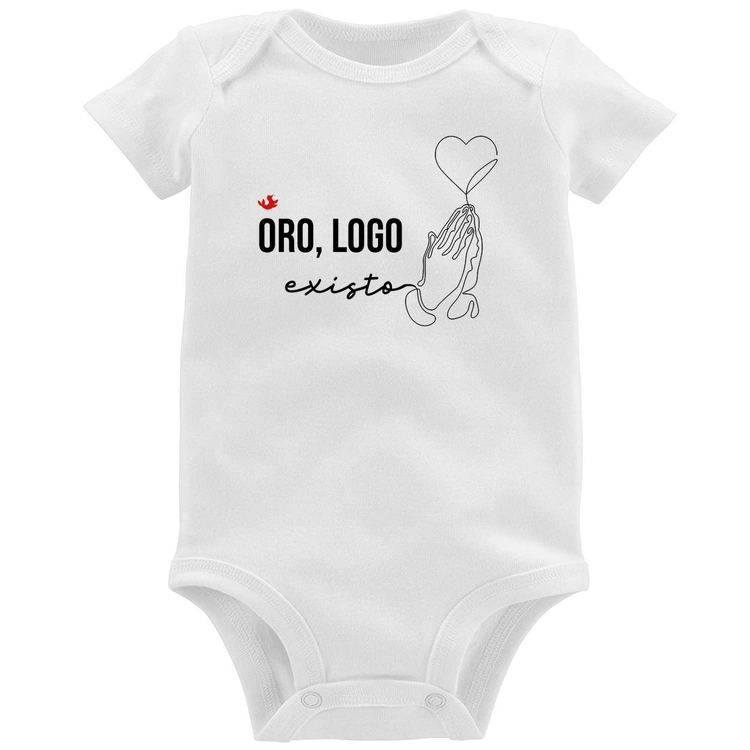 O Body Bebê Oro, logo existo é confeccionado em tecido 100% Poliéster com gola redonda, costura simples e modelagem com caimento reto. A estampa do tema "Religiosas" é feita através do processo Sublimação. Produto ideal para quem busca fidelidade da estampa e ótimo custo-benefício, a estampa não desbota nem quebra.