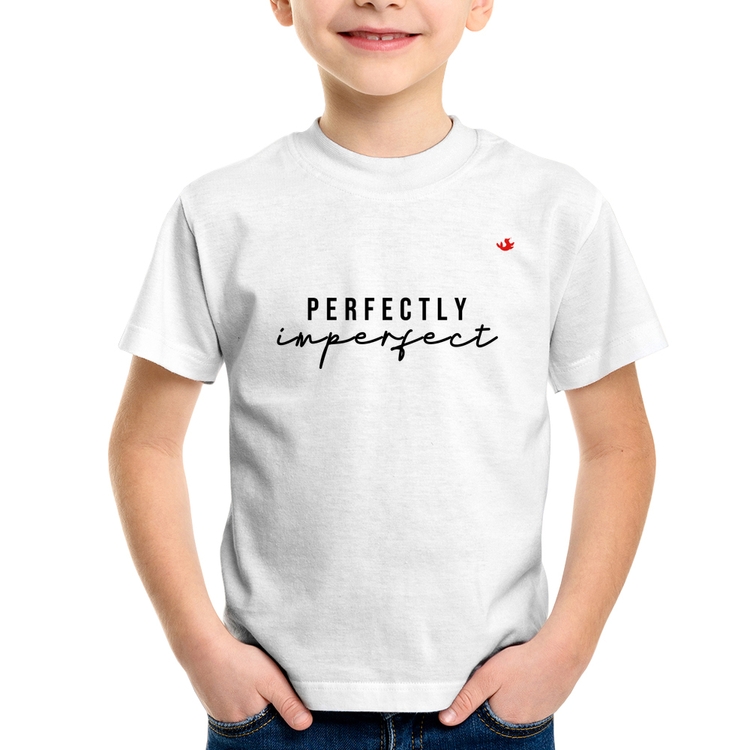 A Camiseta Infantil Perfectly Imperfect é confeccionada em tecido 100% Poliéster com gola redonda, costura simples e modelagem com caimento reto. A estampa do tema "Frases e Memes" é feita através do processo Sublimação. Produto ideal para quem busca fidelidade da estampa e ótimo custo-benefício, a estampa não desbota nem quebra.