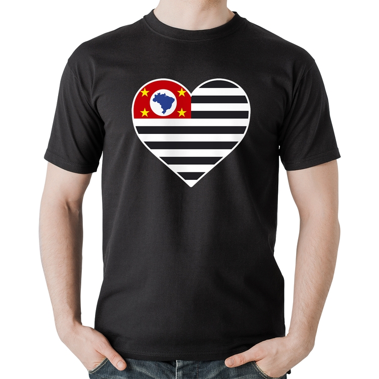 Camiseta Algodão São Paulo Bandeira Estado Coração