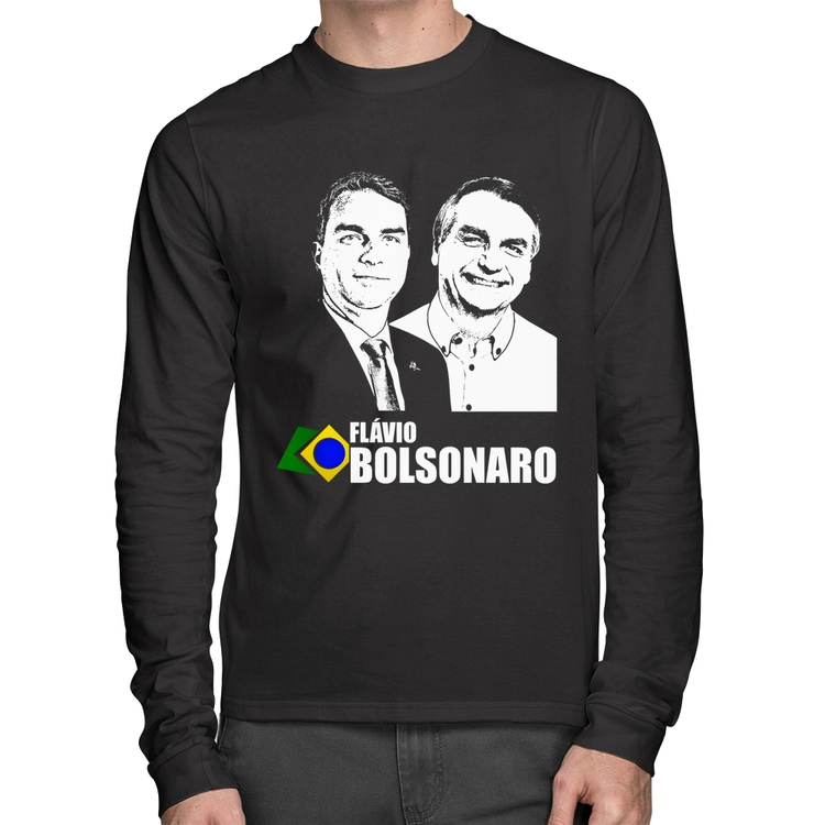 A Camiseta Algodão Flávio e Jair Bolsonaro 2026 Manga Longa é confeccionada em tecido 100% Algodão, malha penteada fio 30.1 com gola redonda, costura reforçada ombro a ombro e modelagem com caimento reto. A estampa do tema "Política" é feita através do processo Digital DTG. Produto ideal para quem busca ótima qualidade e conforto. O percentual de encolhimento pós lavagem é 3,50%.