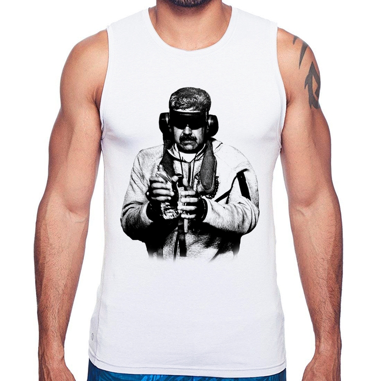 A Regata Nicolás Maduro Preso é confeccionada em tecido 100% Poliéster com gola redonda viés, costura simples e modelagem com caimento reto. A estampa do tema "Política" é feita através do processo Sublimação. Produto ideal para quem busca fidelidade da estampa e ótimo custo-benefício, a estampa não desbota nem quebra.