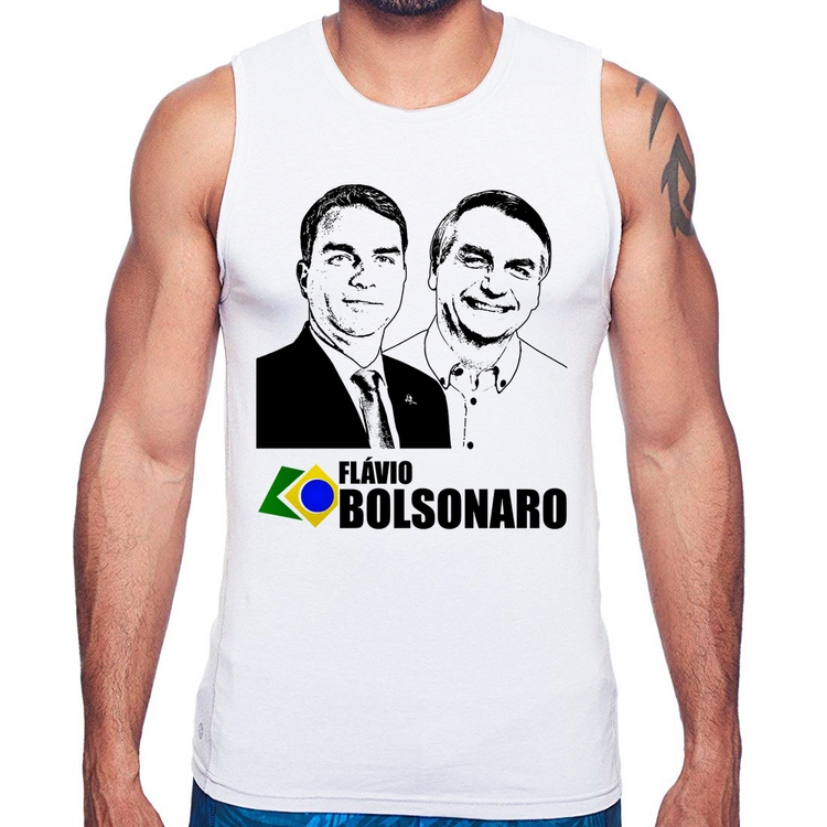 A Regata Flávio e Jair Bolsonaro 2026 é confeccionada em tecido 100% Poliéster com gola redonda viés, costura simples e modelagem com caimento reto. A estampa do tema "Política" é feita através do processo Sublimação. Produto ideal para quem busca fidelidade da estampa e ótimo custo-benefício, a estampa não desbota nem quebra.