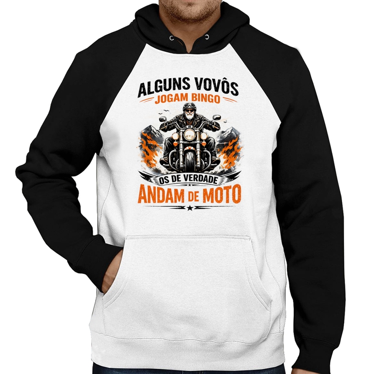 O Moletom Alguns vovôs jogam bingo, os de verdade andam de moto é confeccionado em tecido 88% Poliéster e 12% Algodão com gola redonda, capuz e bolso canguru, costura reforçada e modelagem com caimento reto. A estampa do tema "Motos e Bikes" é feita através do processo Sublimação. Produto ideal para quem busca fidelidade da estampa e ótimo custo-benefício, a estampa não desbota nem quebra.