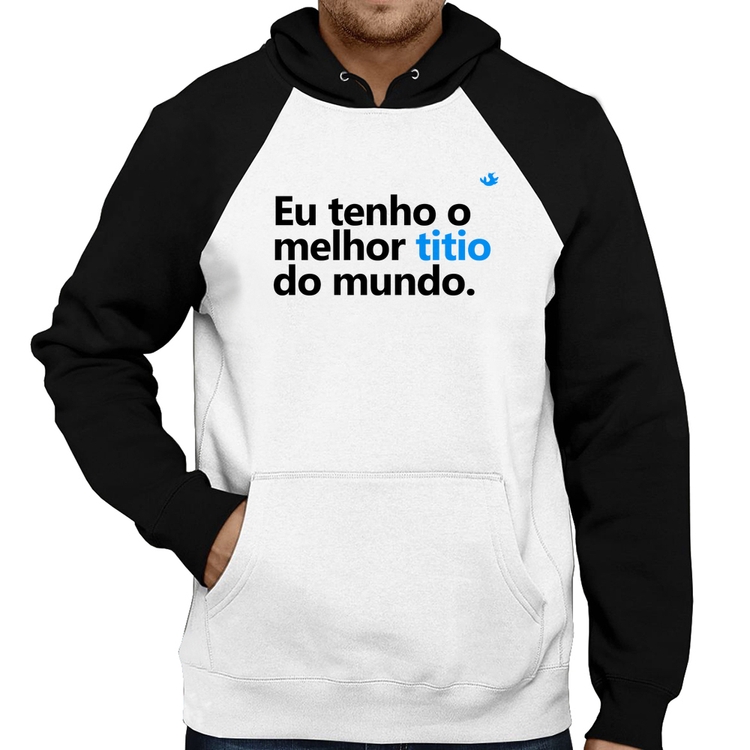 O Moletom Eu tenho o melhor titio do mundo é confeccionado em tecido 88% Poliéster e 12% Algodão com gola redonda, capuz e bolso canguru, costura reforçada e modelagem com caimento reto. A estampa do tema "Comemorativas" é feita através do processo Sublimação. Produto ideal para quem busca fidelidade da estampa e ótimo custo-benefício, a estampa não desbota nem quebra.
