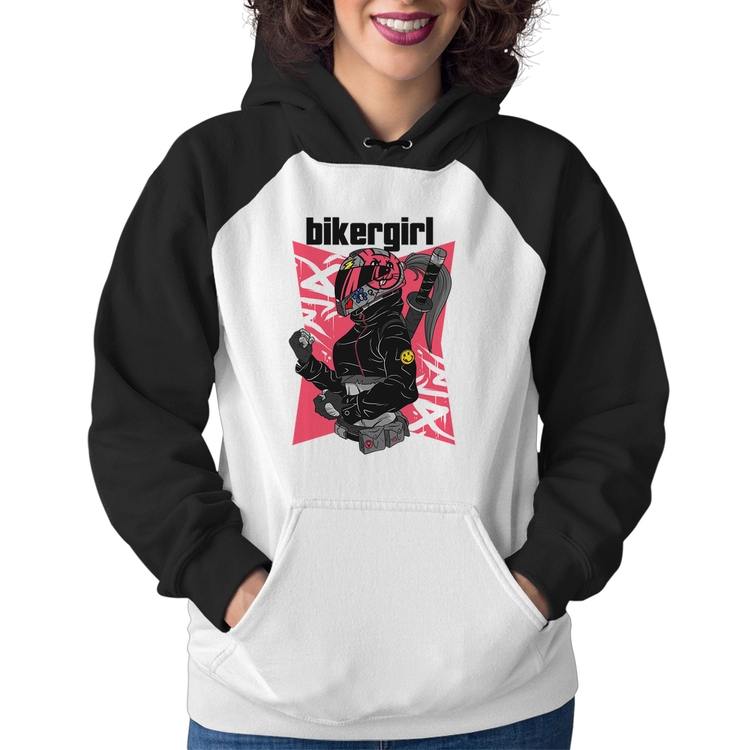 O Moletom Feminino Biker Girl é confeccionado em tecido 88% Poliéster e 12% Algodão com gola redonda, capuz e bolso canguru, costura reforçada e modelagem com caimento acinturado. A estampa do tema "Motos e Bikes" é feita através do processo Sublimação. Produto ideal para quem busca fidelidade da estampa e ótimo custo-benefício, a estampa não desbota nem quebra.