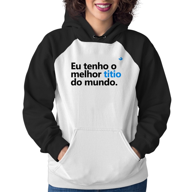 O Moletom Feminino Eu tenho o melhor titio do mundo é confeccionado em tecido 88% Poliéster e 12% Algodão com gola redonda, capuz e bolso canguru, costura reforçada e modelagem com caimento acinturado. A estampa do tema "Comemorativas" é feita através do processo Sublimação. Produto ideal para quem busca fidelidade da estampa e ótimo custo-benefício, a estampa não desbota nem quebra.