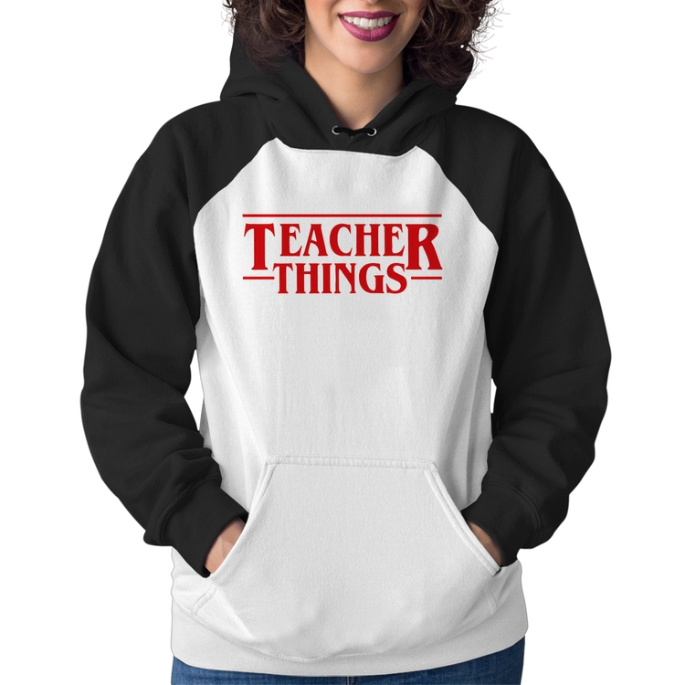 O Moletom Feminino Teacher Things é confeccionado em tecido 88% Poliéster e 12% Algodão com gola redonda, capuz e bolso canguru, costura reforçada e modelagem com caimento acinturado. A estampa do tema "Cursos e Profissões" é feita através do processo Sublimação. Produto ideal para quem busca fidelidade da estampa e ótimo custo-benefício, a estampa não desbota nem quebra.