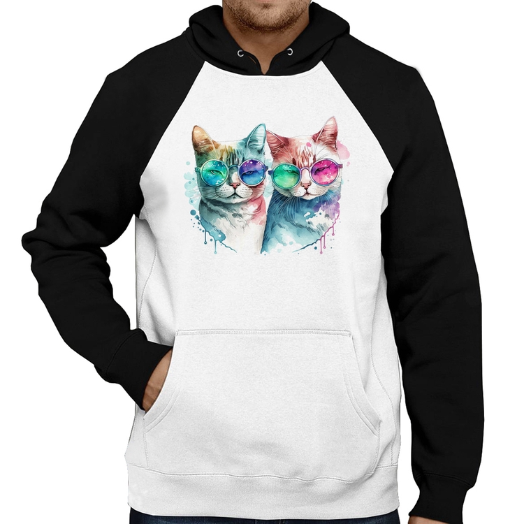 O Moletom Gatos de óculos é confeccionado em tecido 88% Poliéster e 12% Algodão com gola redonda, capuz e bolso canguru, costura reforçada e modelagem com caimento reto. A estampa do tema "Esportes" é feita através do processo Sublimação. Produto ideal para quem busca fidelidade da estampa e ótimo custo-benefício, a estampa não desbota nem quebra.