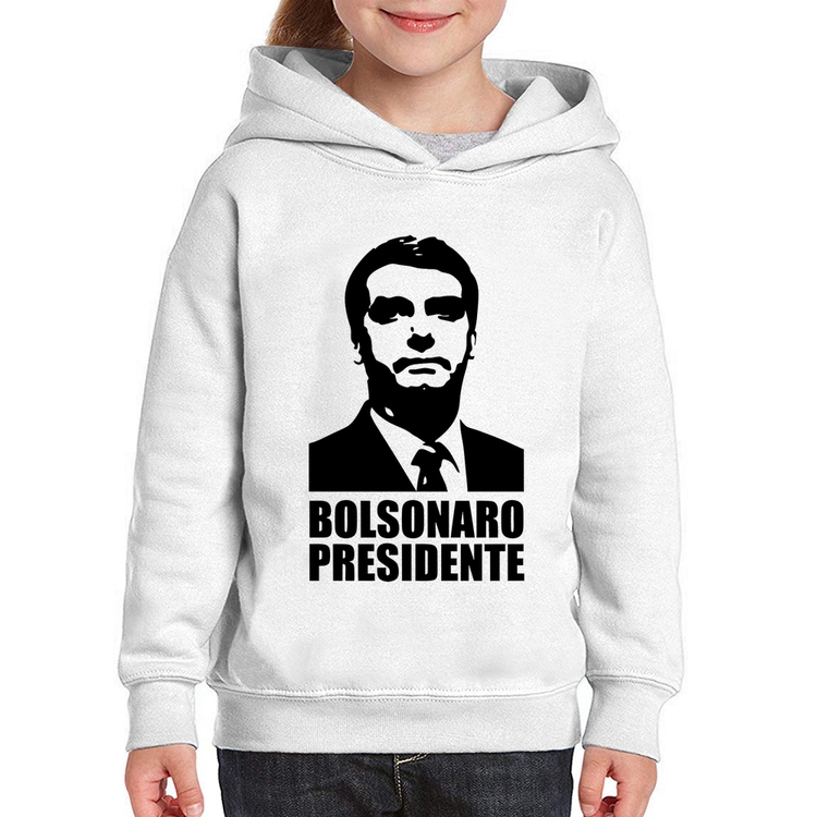 O Moletom Infantil Bolsonaro Presidente é confeccionado em tecido 88% Poliéster e 12% Algodão com gola redonda, capuz e bolso lateral, costura reforçada e modelagem com caimento reto. A estampa do tema "Política" é feita através do processo Sublimação. Produto ideal para quem busca fidelidade da estampa e ótimo custo-benefício, a estampa não desbota nem quebra.