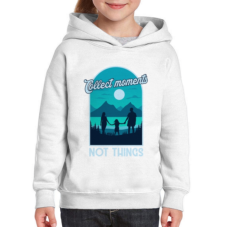 O Moletom Infantil Collect Moments Not Things é confeccionado em tecido 88% Poliéster e 12% Algodão com gola redonda, capuz e bolso lateral, costura reforçada e modelagem com caimento reto. A estampa do tema "Frases e Memes" é feita através do processo Sublimação. Produto ideal para quem busca fidelidade da estampa e ótimo custo-benefício, a estampa não desbota nem quebra.