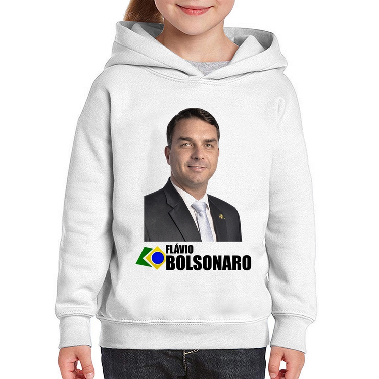 O Moletom Infantil Flávio Bolsonaro é confeccionado em tecido 88% Poliéster e 12% Algodão com gola redonda, capuz e bolso lateral, costura reforçada e modelagem com caimento reto. A estampa do tema "Política" é feita através do processo Sublimação. Produto ideal para quem busca fidelidade da estampa e ótimo custo-benefício, a estampa não desbota nem quebra.