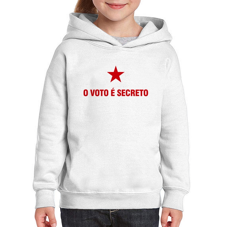 O Moletom Infantil O voto é secreto é confeccionado em tecido 88% Poliéster e 12% Algodão com gola redonda, capuz e bolso lateral, costura reforçada e modelagem com caimento reto. A estampa do tema "Política" é feita através do processo Sublimação. Produto ideal para quem busca fidelidade da estampa e ótimo custo-benefício, a estampa não desbota nem quebra.