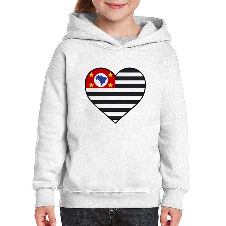 O Moletom Infantil São Paulo Bandeira Estado Coração é confeccionado em tecido 88% Poliéster e 12% Algodão com gola redonda, capuz e bolso lateral, costura reforçada e modelagem com caimento reto. A estampa do tema "Bandeiras" é feita através do processo Sublimação. Produto ideal para quem busca fidelidade da estampa e ótimo custo-benefício, a estampa não desbota nem quebra.