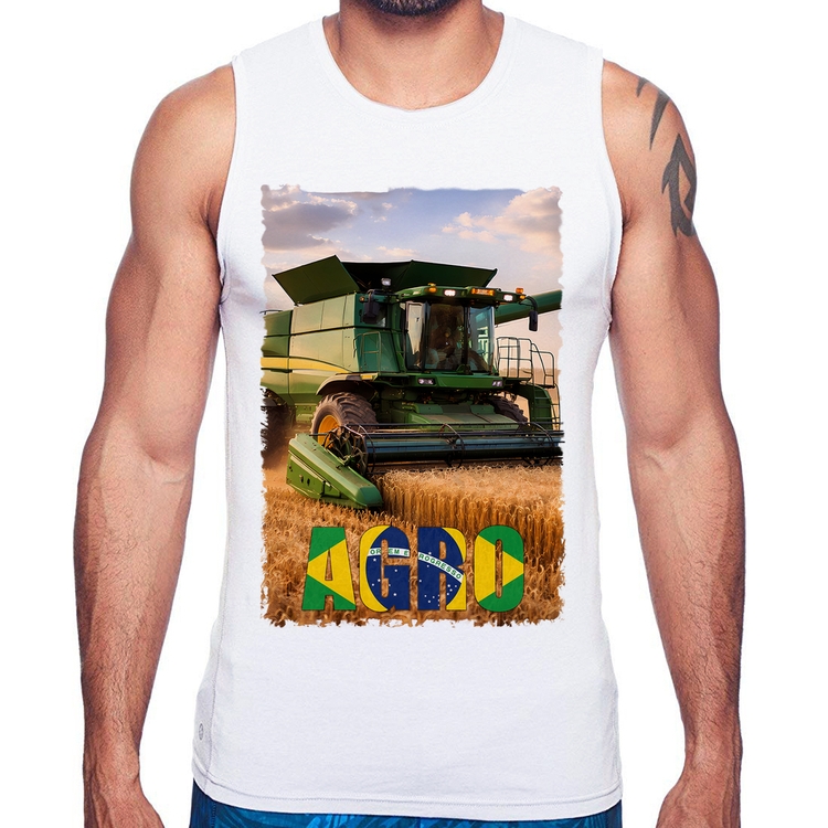 A Regata Colheitadeira Agro Brasil Rural é confeccionada em tecido 100% Poliéster com gola redonda viés, costura simples e modelagem com caimento reto. A estampa do tema "Agro" é feita através do processo Sublimação. Produto ideal para quem busca fidelidade da estampa e ótimo custo-benefício, a estampa não desbota nem quebra.