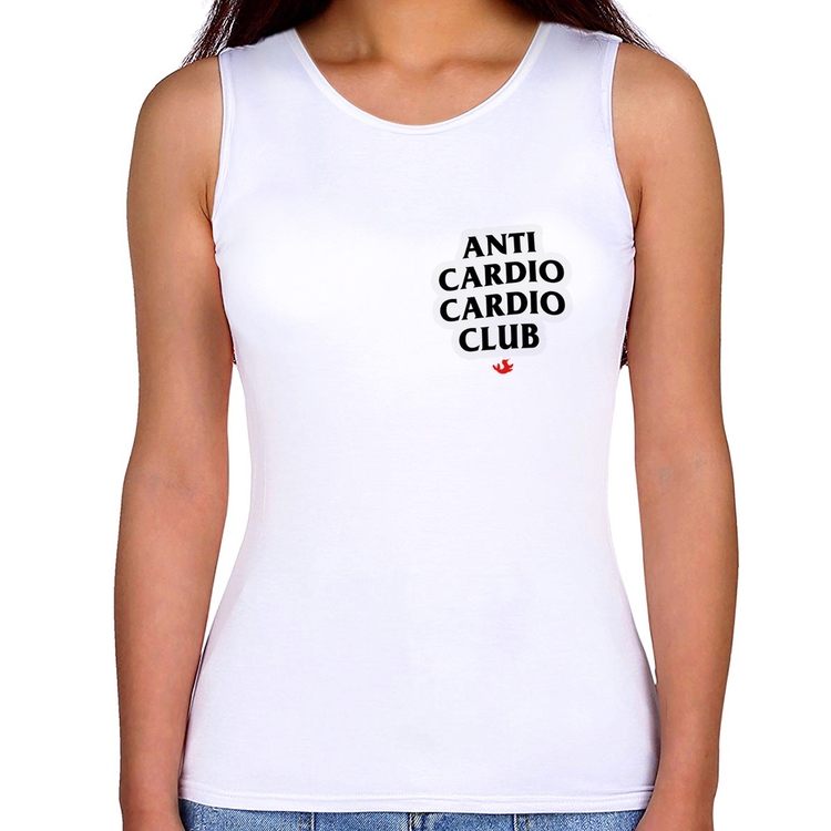 A Regata Feminina Anti Cardio Cardio Club é confeccionada em tecido 100% Poliéster com gola redonda viés, costura simples e modelagem com caimento acinturado. A estampa do tema "Frases e Memes" é feita através do processo Sublimação. Produto ideal para quem busca fidelidade da estampa e ótimo custo-benefício, a estampa não desbota nem quebra.