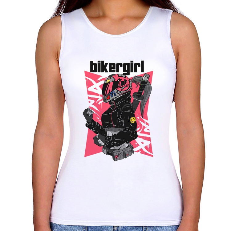A Regata Feminina Biker Girl é confeccionada em tecido 100% Poliéster com gola redonda viés, costura simples e modelagem com caimento acinturado. A estampa do tema "Motos e Bikes" é feita através do processo Sublimação. Produto ideal para quem busca fidelidade da estampa e ótimo custo-benefício, a estampa não desbota nem quebra.