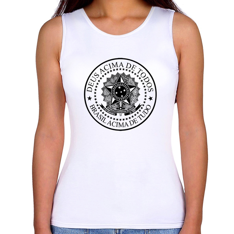 A Regata Feminina Brasil Acima de Tudo Deus Acima de Todos é confeccionada em tecido 100% Poliéster com gola redonda viés, costura simples e modelagem com caimento acinturado. A estampa do tema "Política" é feita através do processo Sublimação. Produto ideal para quem busca fidelidade da estampa e ótimo custo-benefício, a estampa não desbota nem quebra.