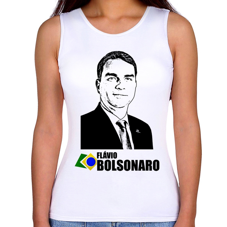 A Regata Feminina Flávio Bolsonaro 2026 é confeccionada em tecido 100% Poliéster com gola redonda viés, costura simples e modelagem com caimento acinturado. A estampa do tema "Política" é feita através do processo Sublimação. Produto ideal para quem busca fidelidade da estampa e ótimo custo-benefício, a estampa não desbota nem quebra.