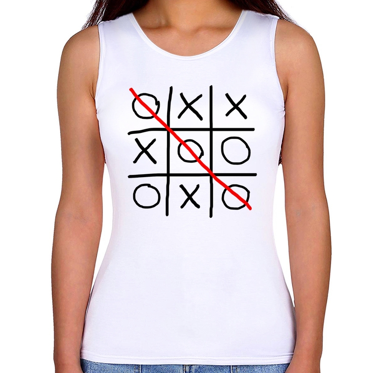A Regata Feminina Jogo da Velha é confeccionada em tecido 100% Poliéster com gola redonda viés, costura simples e modelagem com caimento acinturado. A estampa do tema "Game e Jogos" é feita através do processo Sublimação. Produto ideal para quem busca fidelidade da estampa e ótimo custo-benefício, a estampa não desbota nem quebra.